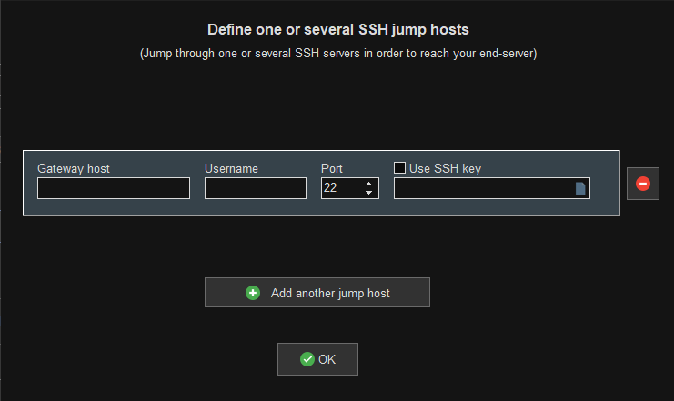위의 설정대로 설정을 하고 나서 Network settings 탭을 보시면 SSH gateway (jump host) 라는 버튼이 있는데요.